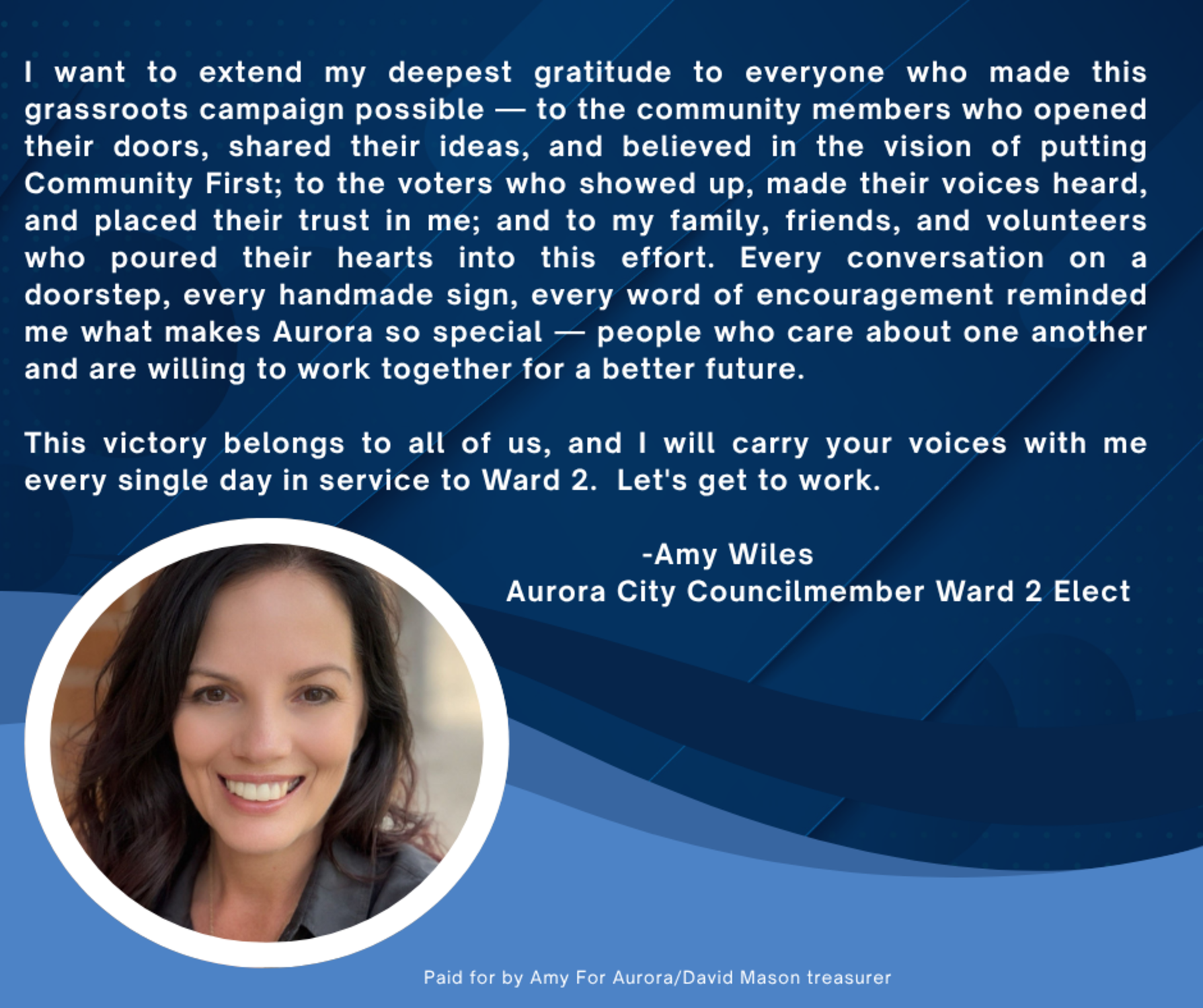 Statement from Amy Wiles, Aurora Ward 2 City Councilmember-Elect on Election Results