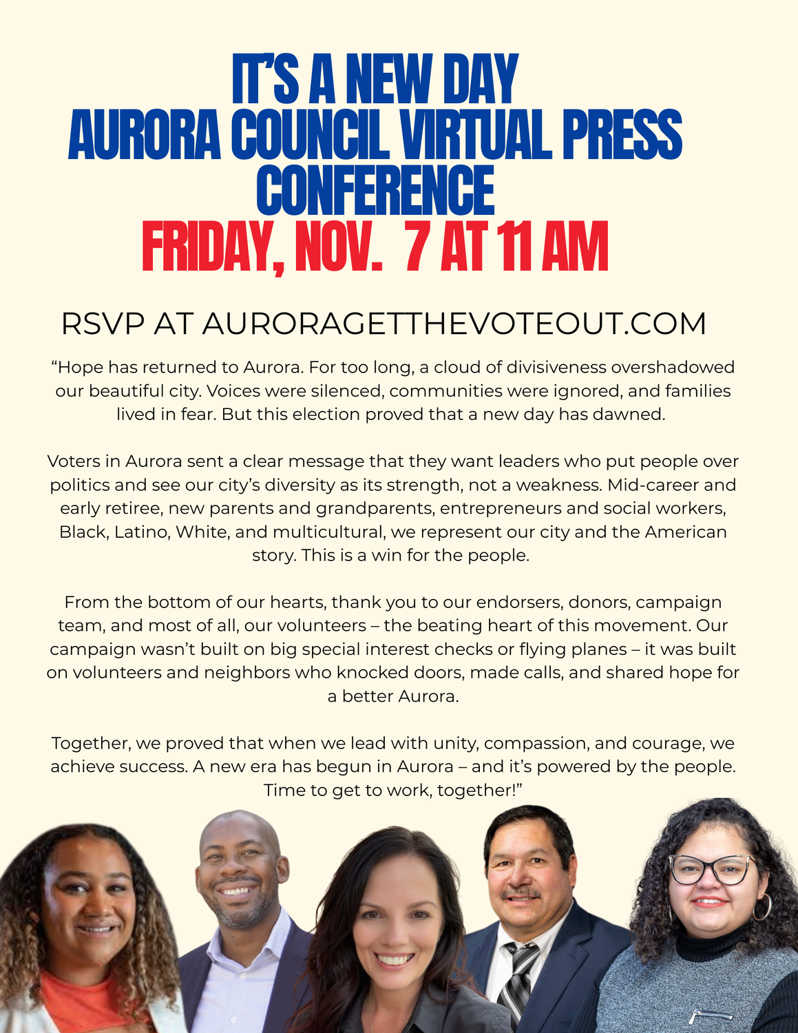 This isn’t the end just because the campaign is over — it’s the continuation of the work we started. I believe that by keeping Community First, we’ll move Aurora forward.”